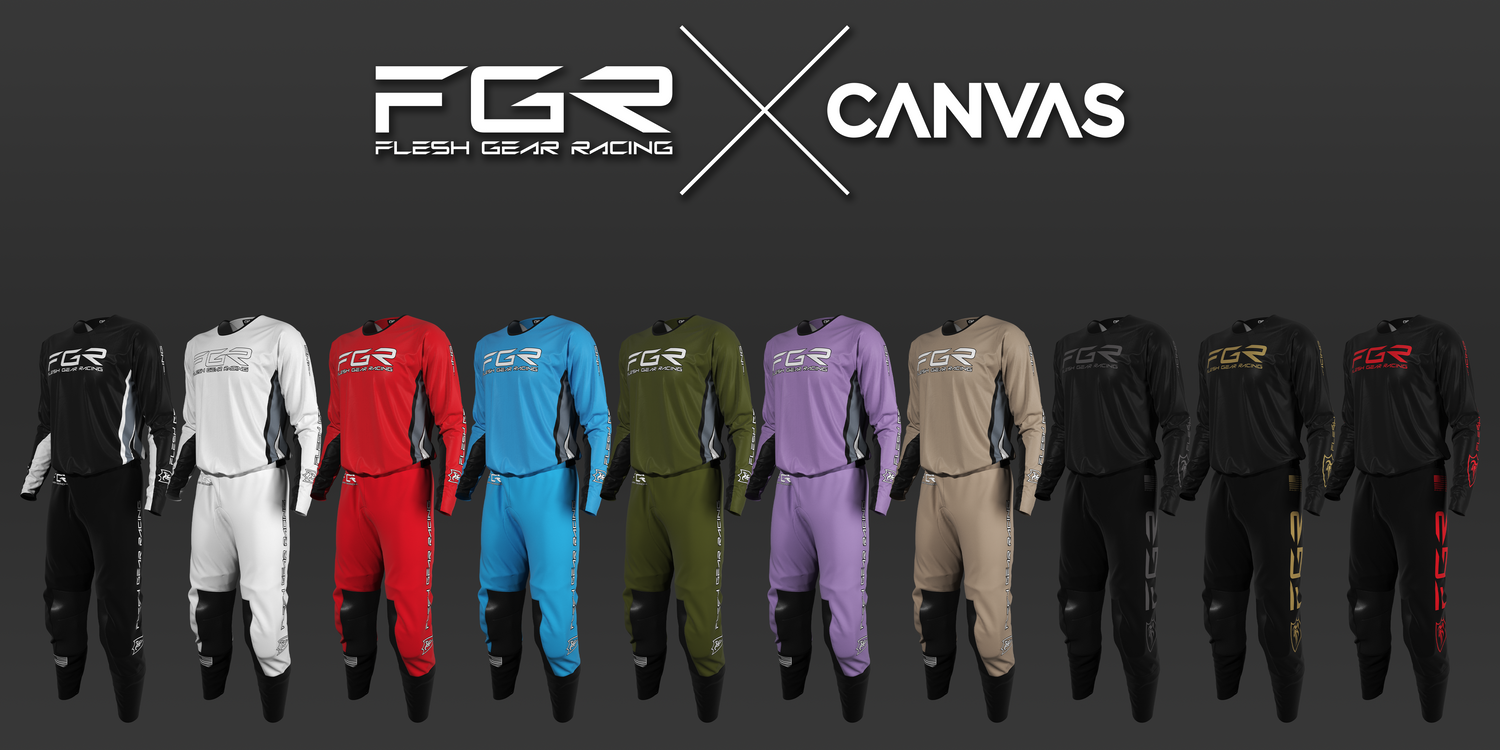 We’re thrilled to announce that the new Fleshgear X CANVASMX collaboration is officially live! Experience the cutting-edge of technical MX riding gear, proudly 100% made in the USA. Crafted from the finest materials, each set promises unparalleled performance and style. Plus, you can personalize your gear with custom names and numbers at the time of ordering.